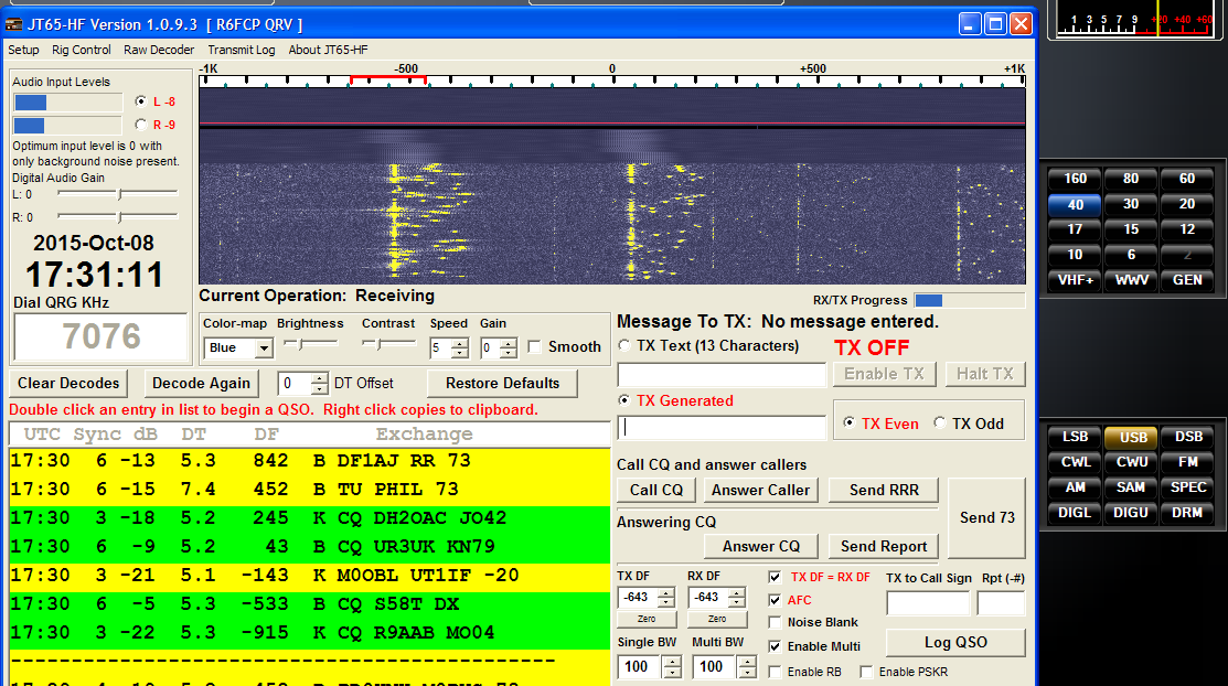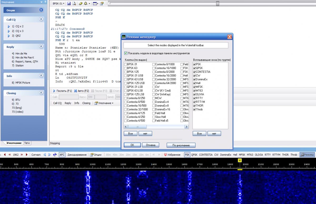 Хотелось бы принять участие в в днях активности http://rdrclub.ru/dni-aktivnosti-rts...neta-digiradio, к сожалению по данным видам связи, на сайте не нашел (Contestia 4/125, FSK Hell 105, THOR 8; 2016 - Olivia 4/250, ThrobX 2, MFSK 4.), может у кого то будет время поделится опытом и как это реализовать. Здесь клон SDR 1000 и UR5EQF. Поделитесь опытом, хотя есть поисковики, но думаю я не один такой, так что тема будет востребована на форуме.