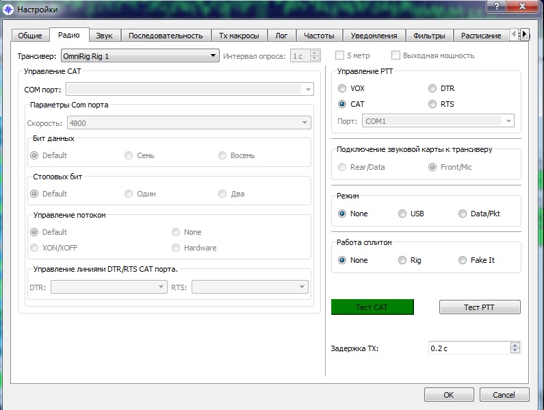 Из мануала к трансиверу установлены следующие настройки порта (Виртуального COM порта конвертера PL2303) и по аналогии те же настройки в программах: