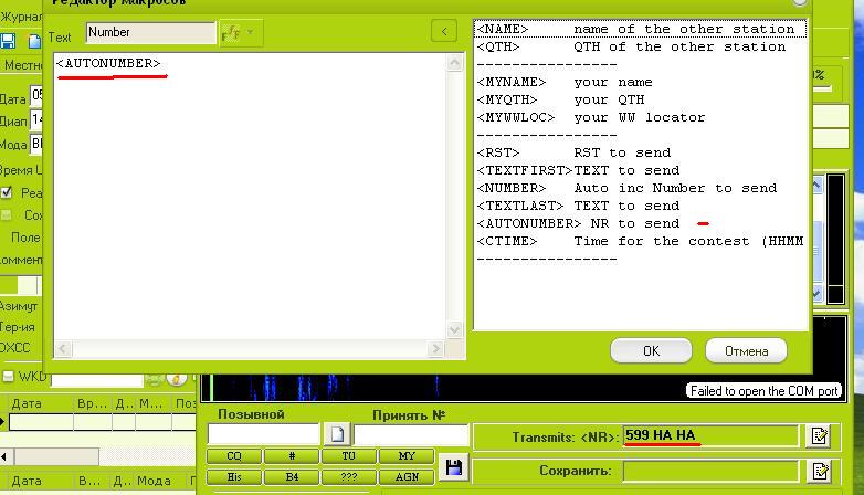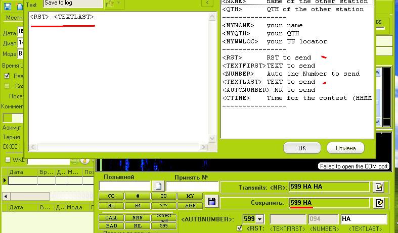 Но этого не достаточно и модуль говорит "не буду передавать и сохранять в журнал пока не заполнишь соответствующие поля Transmits и Сохранить". Жмем на лист с карандашом справа от Transmits и выбираем двойным кликом AUTONUMBER. Или можно RST пробел TEXTLAST пробел TEXTLAST. Жмем OK.