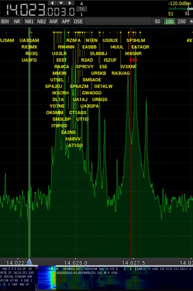 Недостаток - либо спекроскоп, либо приёмник. Явно не хватает обзора диапазона. Но решение этой проблемы, давно предложил бельгиец, подключением ColibriNANO. Что при использовании программы SDC от UT4LW даёт возможность выводит на монитор позывные станций в CW, BPSK, RTTY.