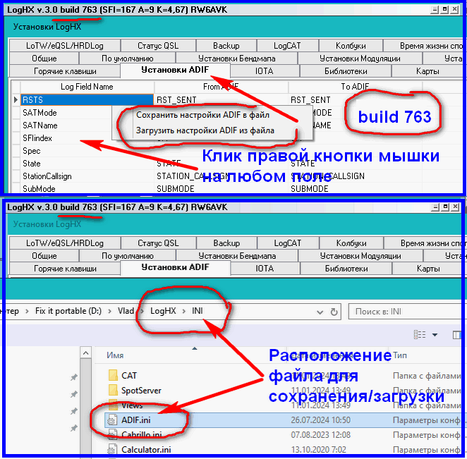 Начиная с этой версии появилась возможность сохранить и загрузить в файл настройки экспорта Adif и отправки на сервер. Сохранение осуществляется в файл ..\LogHX\INI\ADIF.ini
