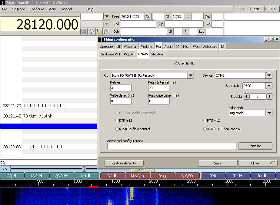 В общем пару вечеров помучился с настройкой FLdigi 3.22.xx -> UnicomDual -> IC706MKII (winXP) setup