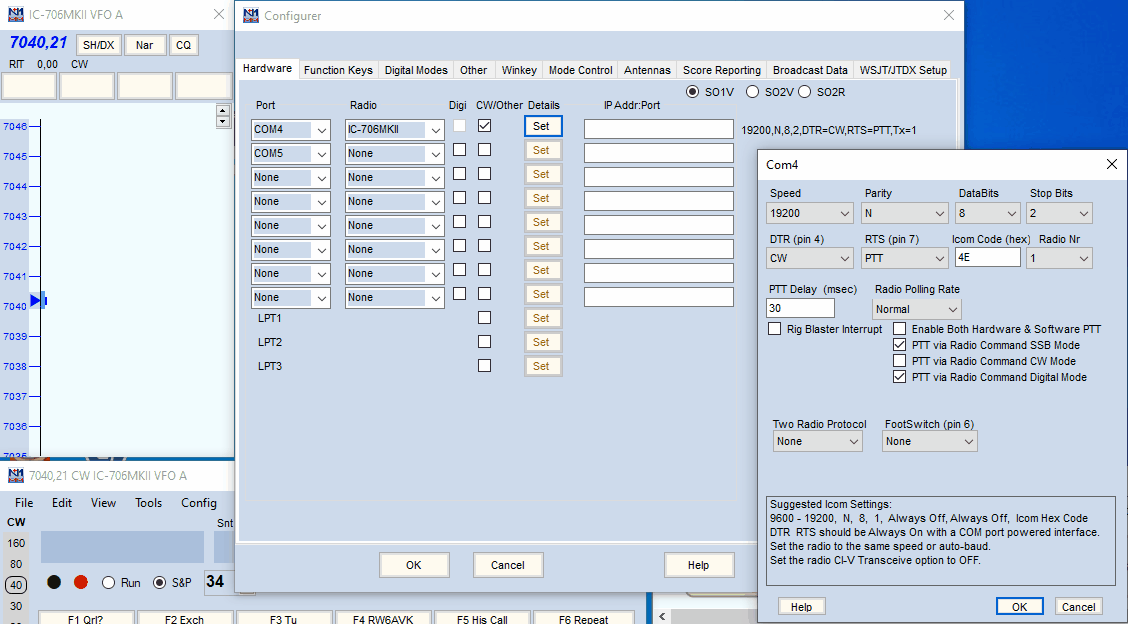 Остальные настройки в ICOM-706MKII для работы с N1MM+.