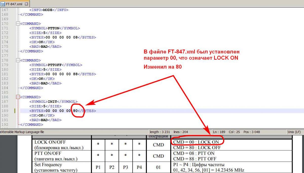 Копаем мануал на трансивер... В аттаче подправленный файл FT-847-1.xml - пробуйте.