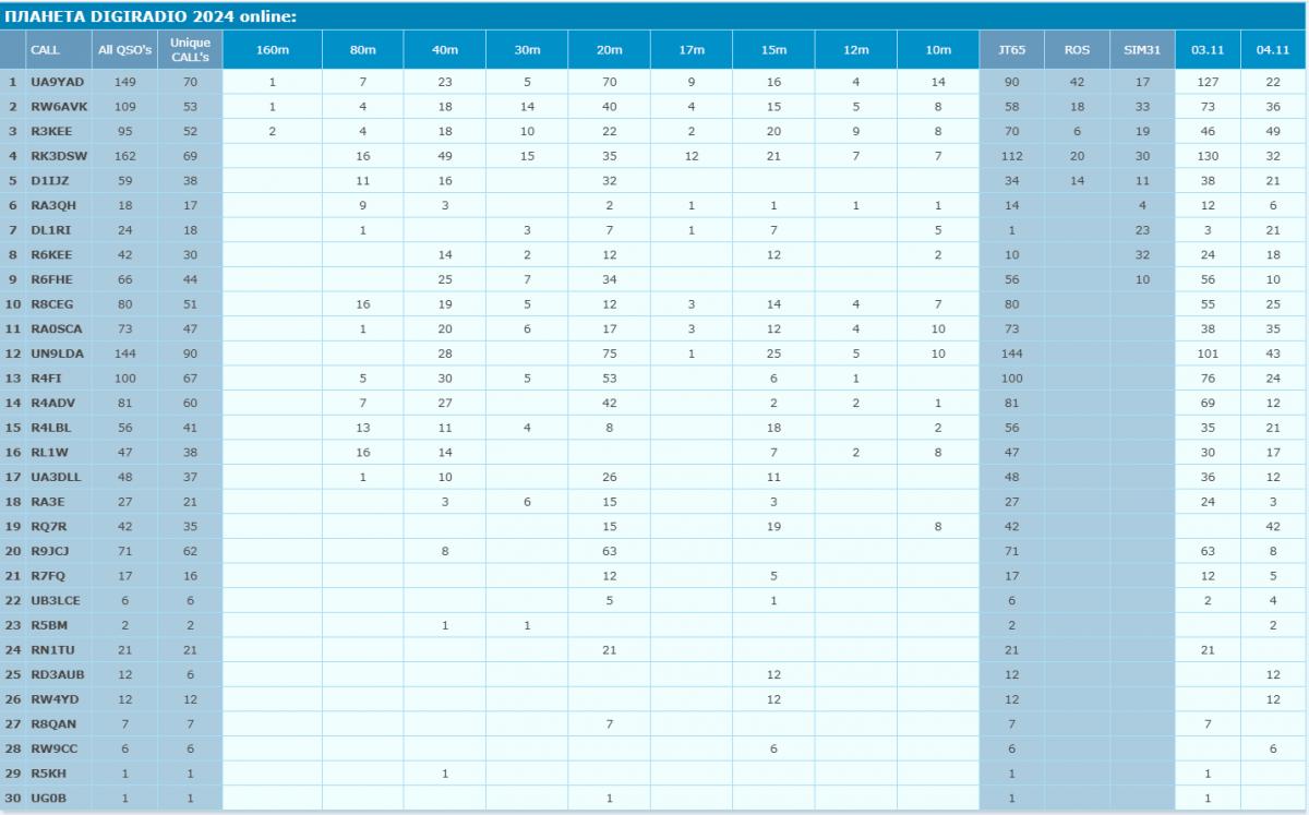 Посвящённые Дню народного единства дни активности «Планета DIGIRADIO 2024» будут проходить двое суток с 00:00 UTC воскресенья 3 ноября до 23:59 UTC понедельника 4 ноября в видах связи JT65, ROS, SIM31 на 9-ти диапазонах 160-10м. Повторные QSO засчитываются на разных диапазонах и в разных модах на одном диапазоне. В днях активности могут принять участие SWL.