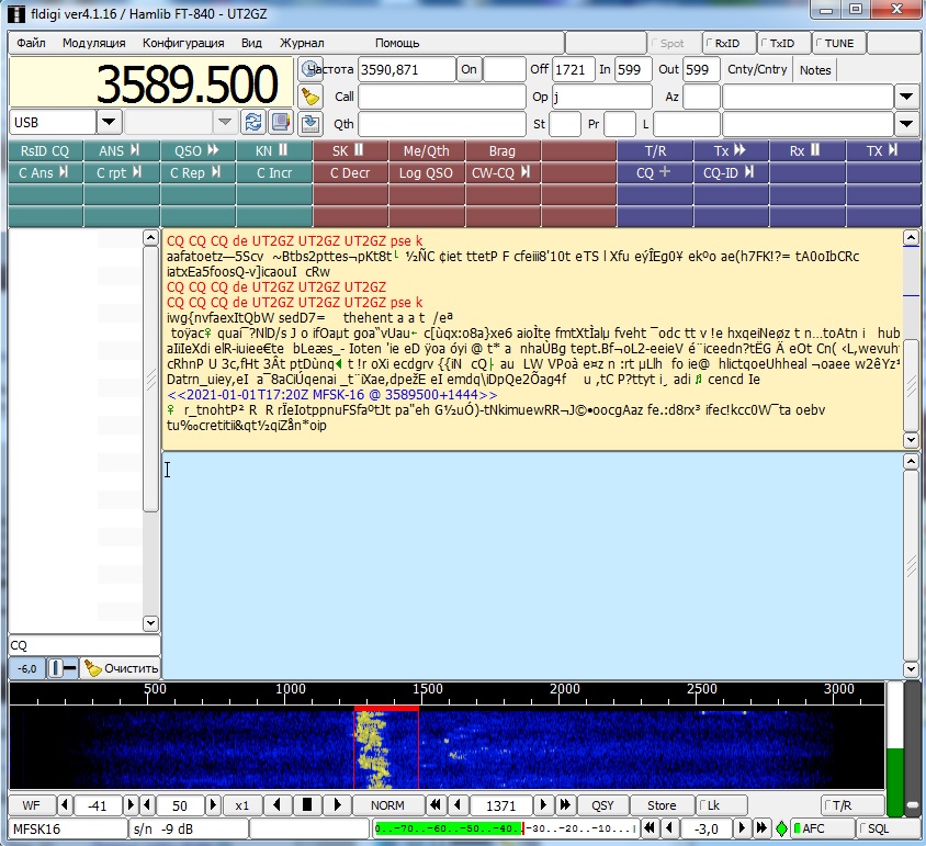 В этой программе при передаче должны быть видны на водопаде свои передаваемые сигналы. Вы видели свой MFSK-16? Такой же точно должен прийти и от Вашего корреспондента. Если приходит другой , будет аброкадабра.