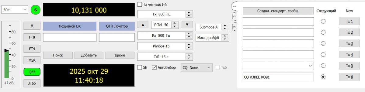 сегодня 30.10.25 с 18ти MSK пробуем Q65 на КВ