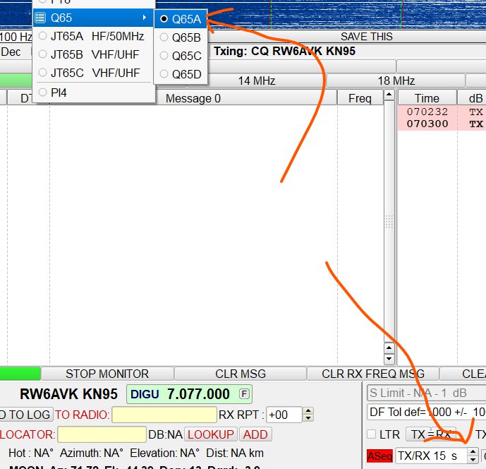 и ещё инфо для тех, кто не знает - Q65 это разновидность (submode) моды MFSK... значит в логе MODE пишем как MFSK