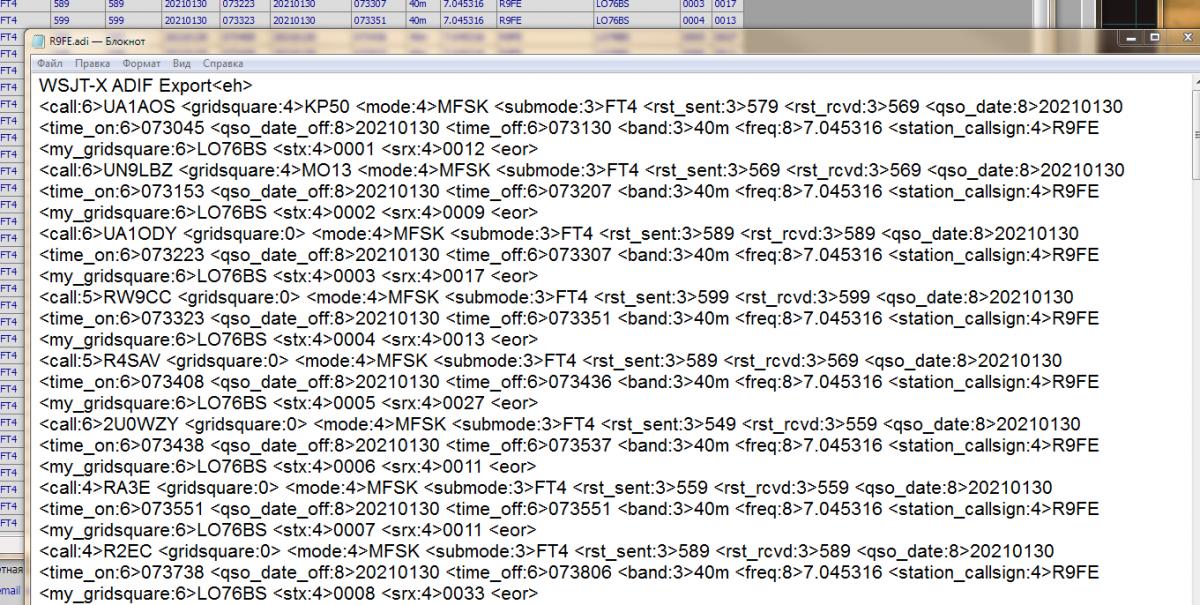 последние RC версии WSJT-X сами ругаются на "Adif header" когда лог открываешь - походу что в этом проблема. у меня на работе тестовая RC5 так себя вела, и в теме про ПО кто-то выкладывал сриншот.