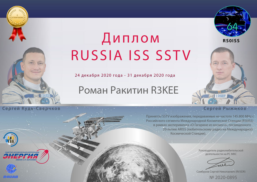 Дипломная программа: Диплом «Russia ISS SSTV»