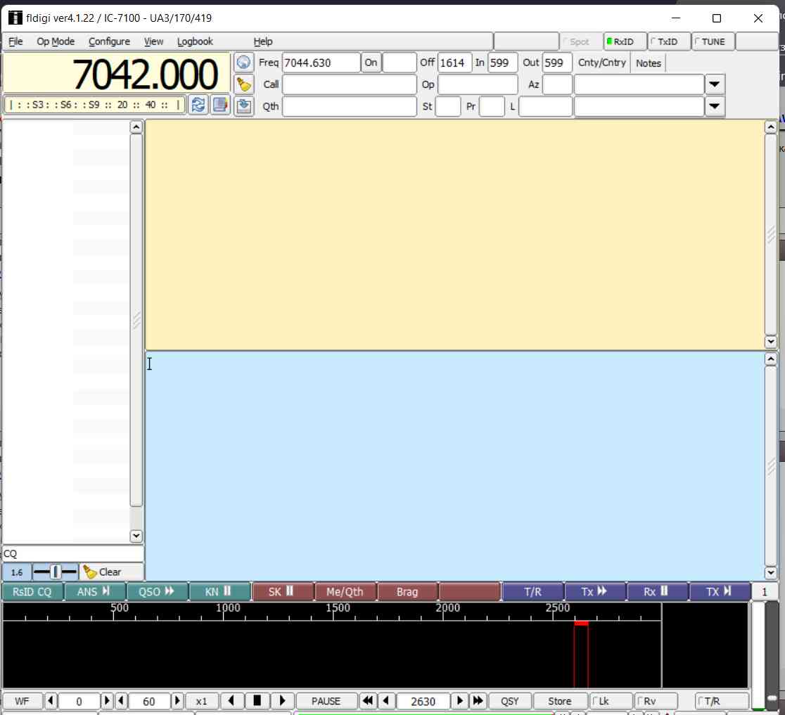 И вот, наконец, буквально только что: связал свой IC-7100 с fldigi через FLRIG. Оказалось, что надо поднастроить и сам трансивер: конкретная инструкция на http://www.w1hkj.com/flrig-help/ic7100_how_to_page.html. Однако не словил ничего толкового: могу управлять частотой и модой, включить-выключить аттенюатор, предусилитель и т.п., а "живут" только 3 окна, выдавая бессмысленный набор символов. Левое окно на белом фоне, правое не на белом (затрудняюсь назвать цвет), и в правом нижнем углу в квадратном окне нечто вроде осциллограммы (вид зависит от моды). Молчит внизу окно для водопада: сплошь чёрное. И в моде HELL в правое окно неспешно выводится нечто похожее на ч/б картинку. Но я ведь не подбирал частоту из рекомендованных для каждой моды, так что это не картинка, а просто шум эфира. В RTTY в правом нижнем окне действительно похожее на 0-1 (не помню, как называется такая модуляция), но верхние окна не наполняются хотя бы символами.