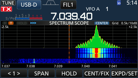 И ещё...заметил что при работе цифрой через Fldigi сигнал размазан по экрану трансивера таким образом, как пример взята передача в bpsk31: