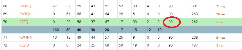 данные по вашему позывному в таблице и рейтинге одинаковые?