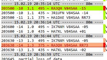 Сегодня,понаблюдал немного V84SAA...та-же карусель идет. По многу раз подходят и отходят :), правда добавилось "умников" ,которые упорно зовут на его частоте, тем самым могут помешать кому-то завершить QSO. Двое с 6-го района ( 6K и 6X ) до сих пор долбят вызов на его частоте, про F\H похоже не читали. После обеда еще понаблюдаю, пока сильные QSB -звать бесполезно...