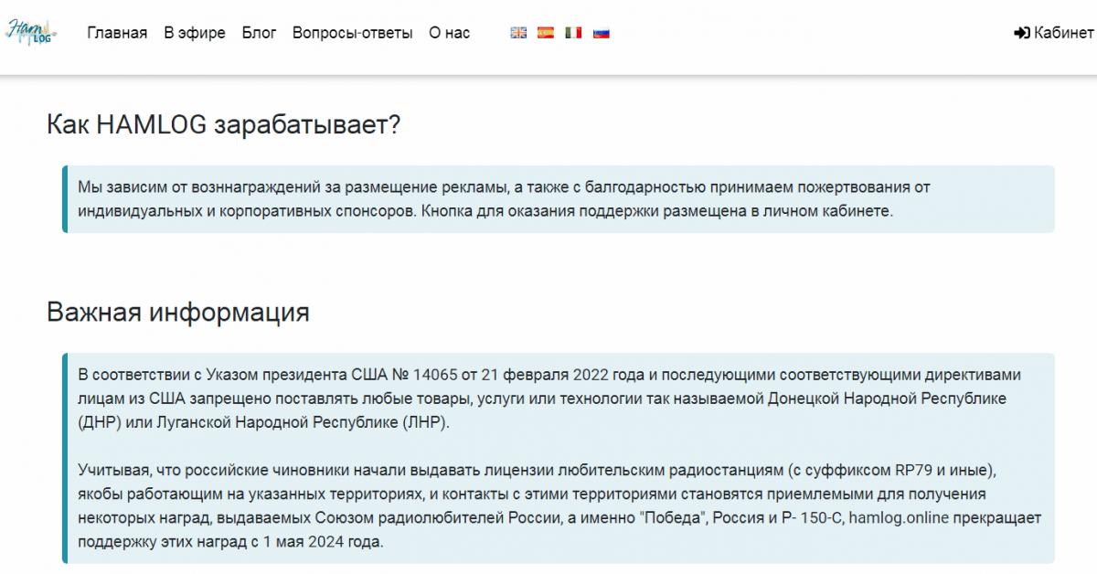 с 19 мая 2024 мы прекращаем сотрудничество с HAMLOG.ONLINE... группа РЦРК на этом сайте будет удалена и дипломы RDRC HAMLOG MEMBERS выдаваться не будут... ранее выданные дипломы останутся на этом сайте