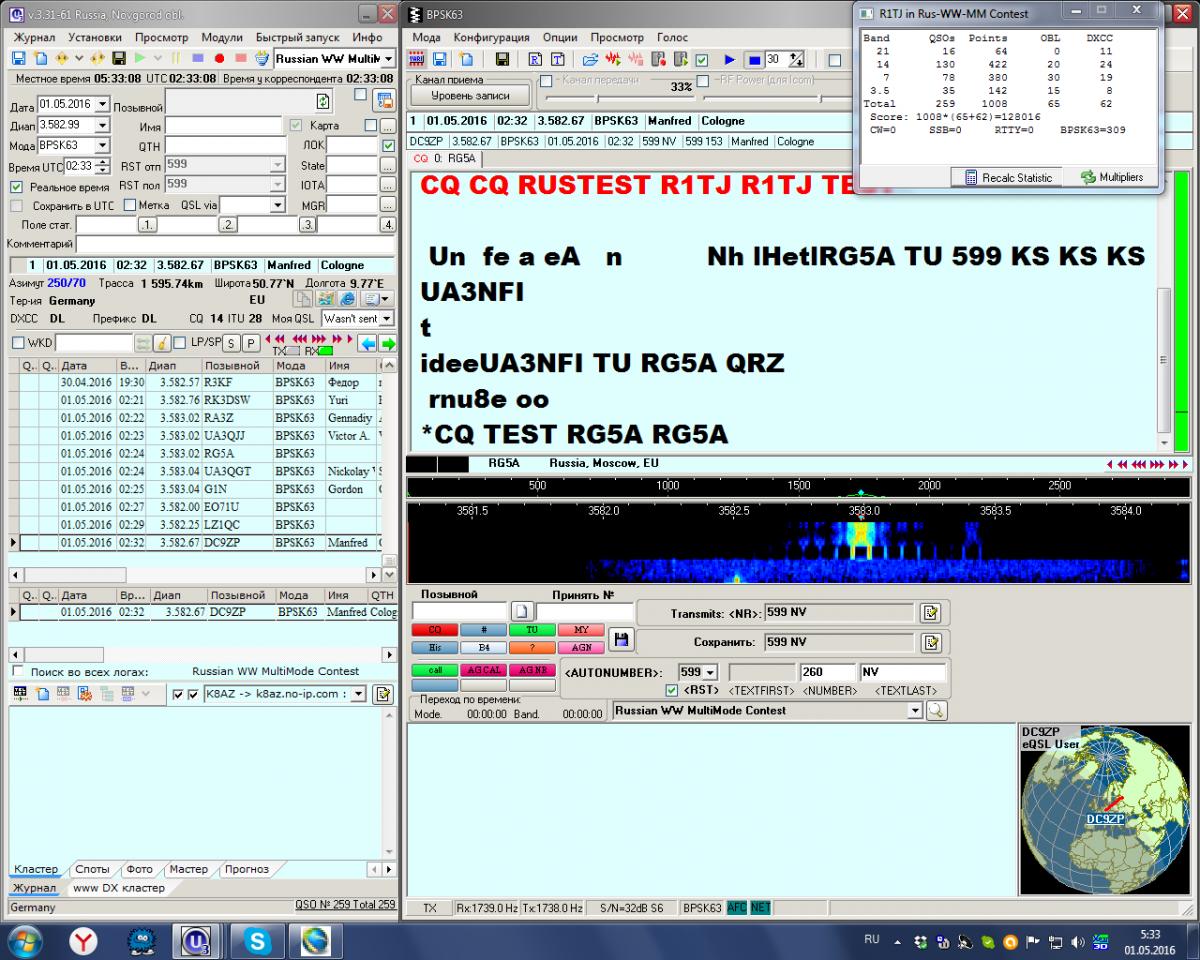 2. Приемный курсор должен стоять на сигнале, а в приемном окне должен быть виден принятый текст с позывным «нарушителя» (+ если в вашей проге включено отображение позывных на водопаде сигнала, то этот позывной должен соответствовать позывному владельца сигнала);