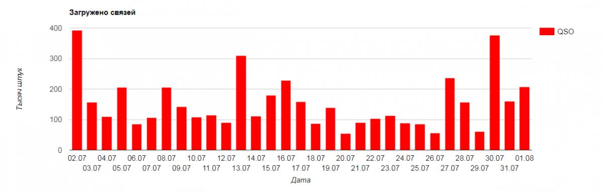 При этом загрузки достаточно активные. Вот загрузка за 30 дней. Минимально - 55.5 тысяч QSO.