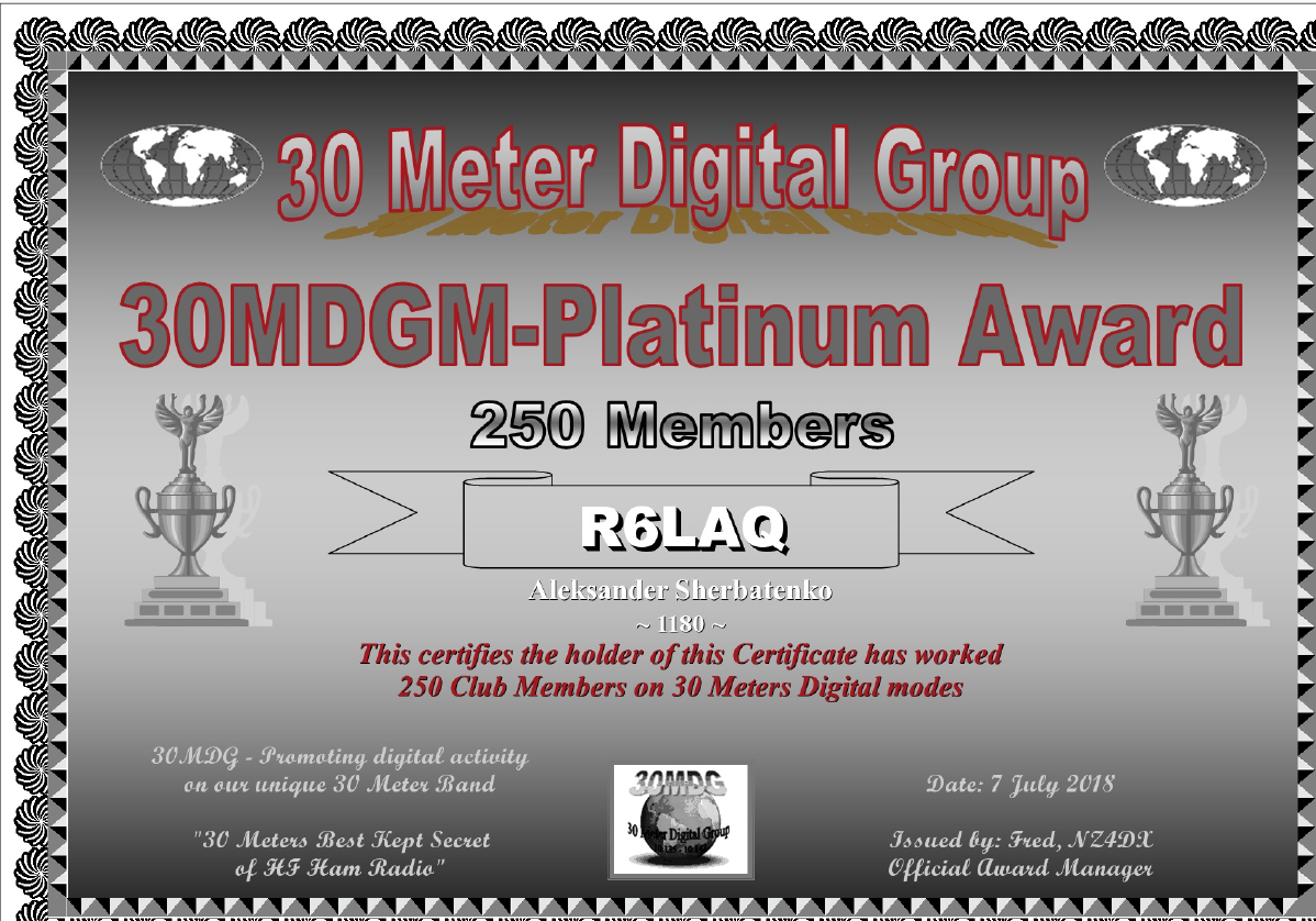 Наш Новосибирский диплом ... получил как активатор R125NSK.