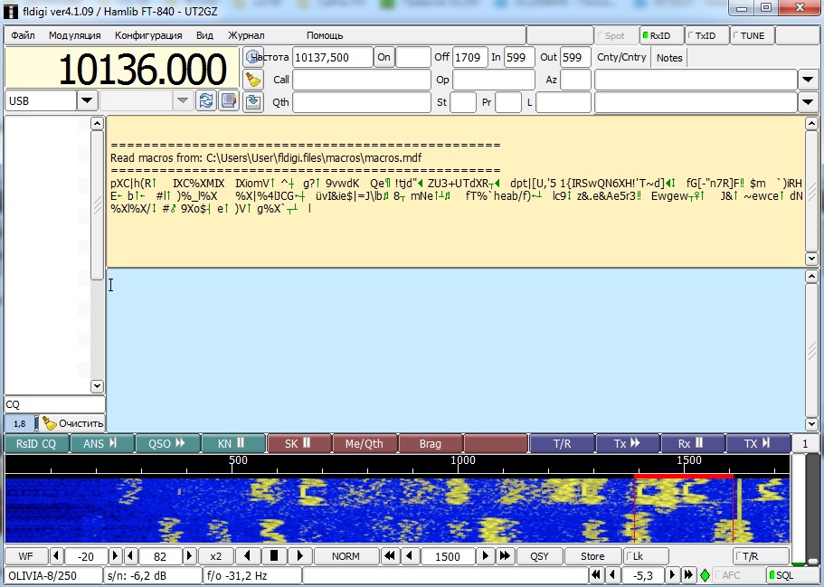 Тыкаю безумно и без результативно. На приеме абракадабра, переключение прием передача нет. Упр трансивером нет.