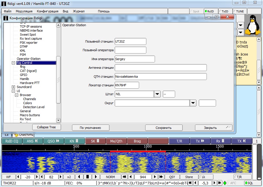 На фото мое радио Yaesu FT840 на стене интерфейс с JTDX все работает. FL Digi 4.1.09. Меню на русском. Спасибо Сергею R7FQ. Не могу настроить CAT.