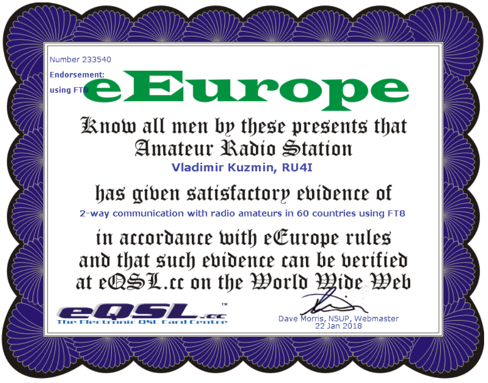 я знаю...там нет электронных дипломов...на http://mwawd.com.... на hamlog.ru я уже давно зарегистрирован....FT8 сайт тоже,просто они адрес сменили вот я и интересовался... кстати...диплом 5 Океан FT8 кто из Грузии был? у меня пока никого грузин нет в FT8