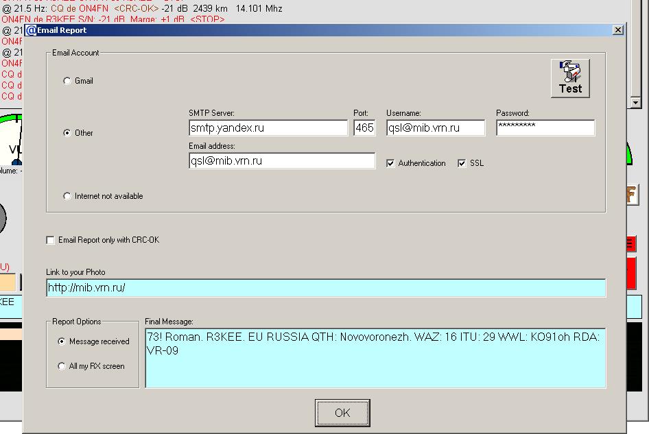 1) режим простого QSO если в тексте который принимает программа будет найден адрес электронной почты то на него будет отправлено сообщение: