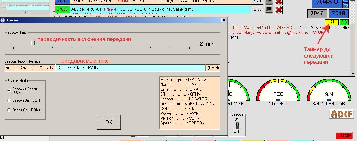Небольшой лафхак: в поле передачи написать "CQ CQ CQ E R3KEE R3KEE R3KEE" поставить в настройках маяка приодичность 1 минуту и включить его ...