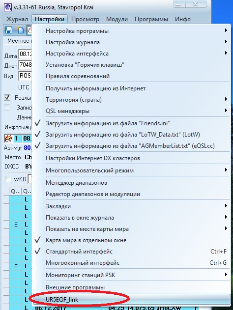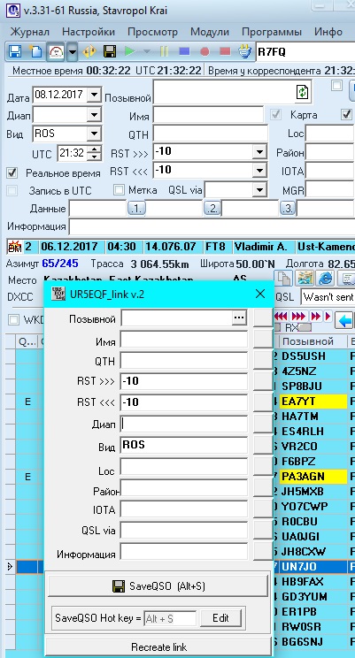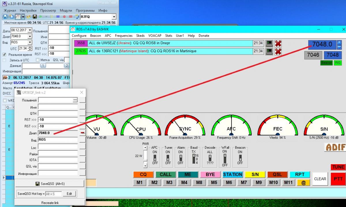 Поскольку сегодня 9 декабря, активность в моде ROS, вернусь к настройкам UR5EQF, для автоматического отображения рабочей частоты.