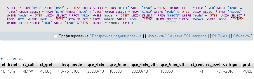 для определения победителя розыгрыша "секретного" приза был составлен запрос который выбирал все связи JT65 из БД участников и выбирал одну из них случайным образом,