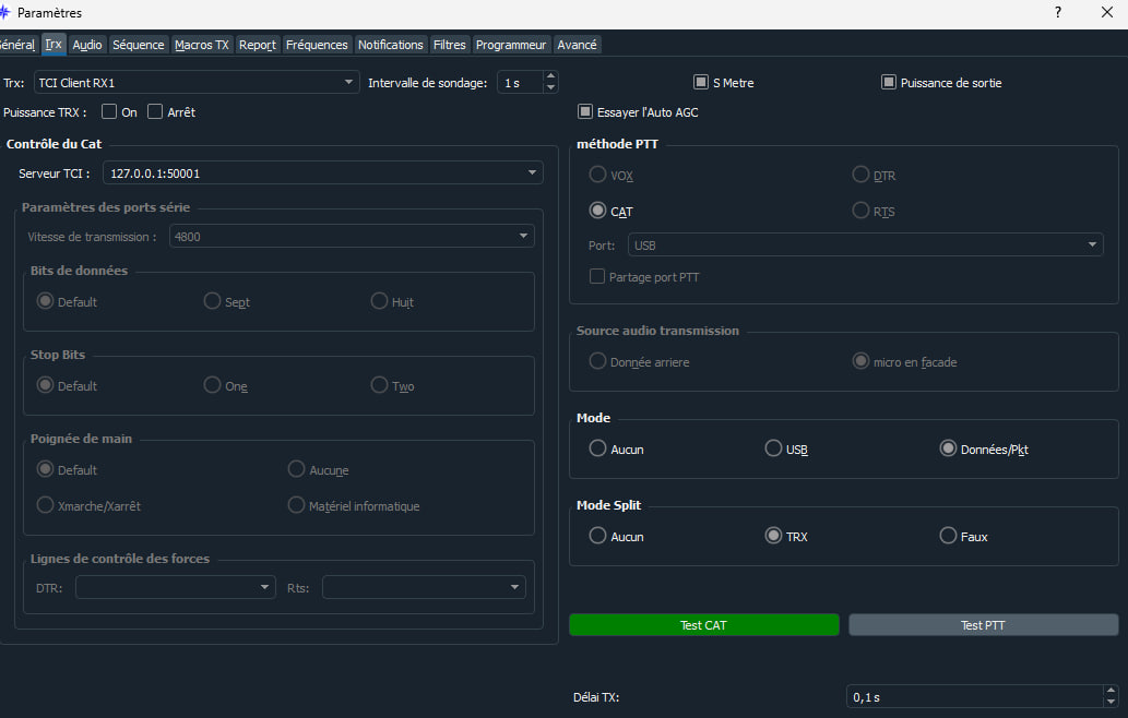 - right mouse button click on 'Halt Tx' enables Waiting mode