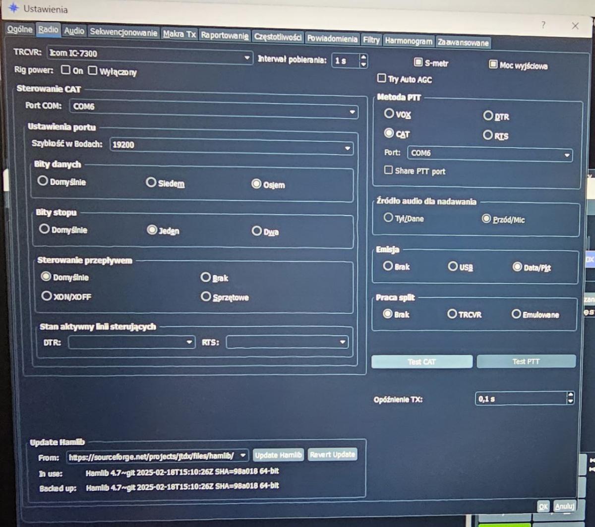 Mac and Windows users can update Hamlib or revert update to previous version in JTDX configuration Radio tab.