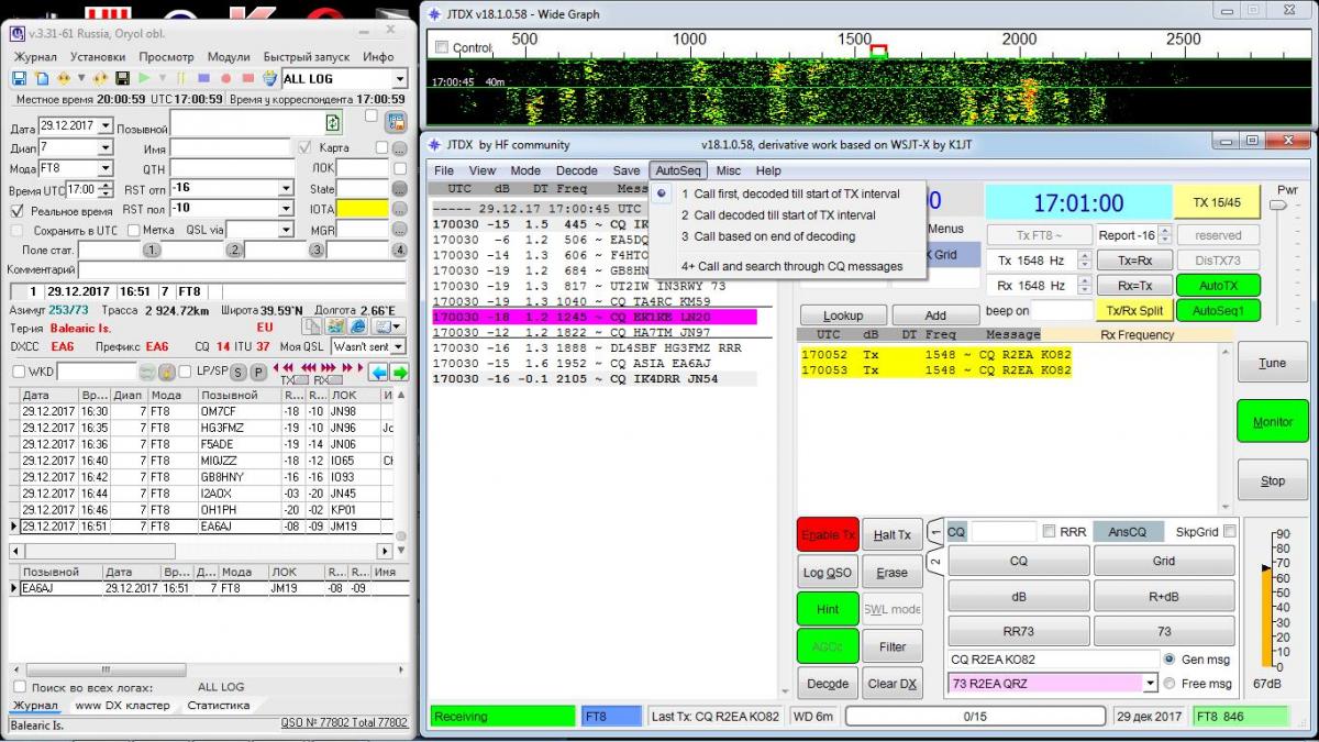 AutoSeq в JTDX предоставляет много опций пользователю из которых можно выбрать наиболее удобную как с точки зрения функционала так и с точки зрения