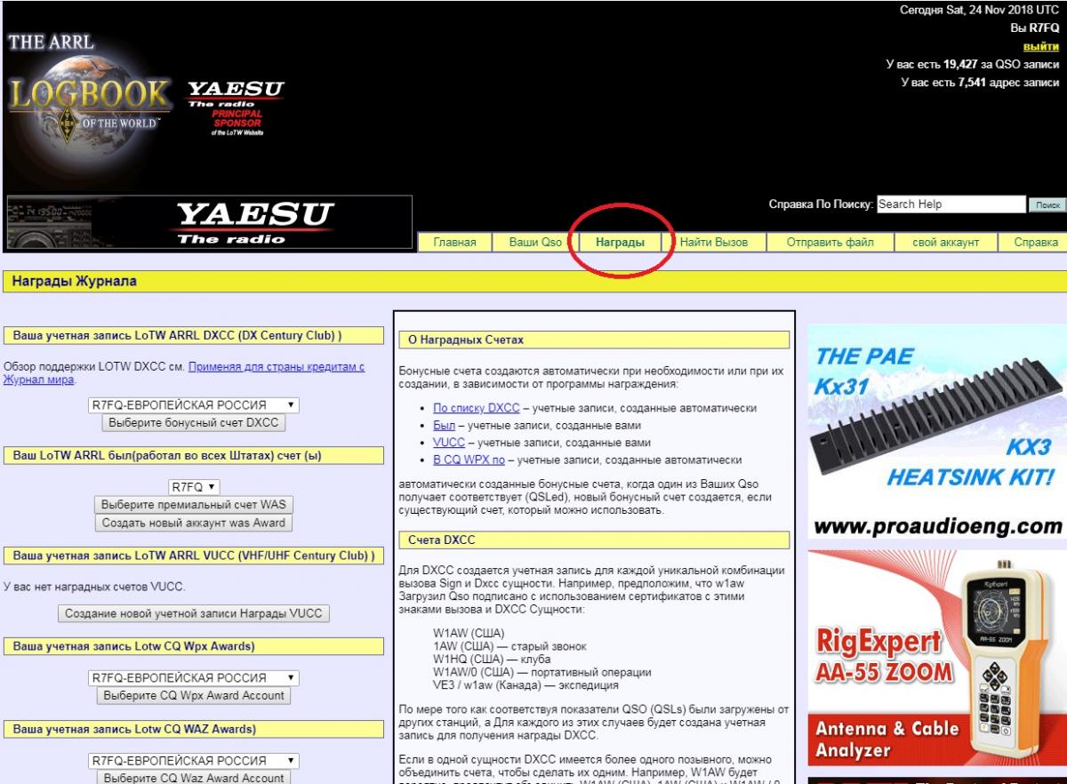 Там надо различать ARRL дипломы или CQ журнала. Учёт удовно в LoTW вести однозначно, у них сделаны фильтры и сразу видно на какие номинации можно подать заявку на диплом.