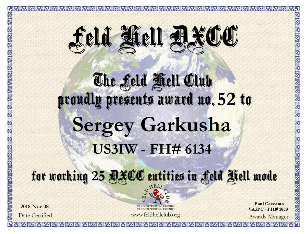 Сегодня получил новый диплом от Feld Hell Club Awards....