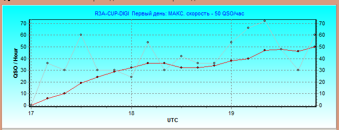 По графику QSO видно,что стартовал я неверно. Во 2-м и 3-м турах -это уже поправил -средняя скорость там ~ 40 QSO в час.