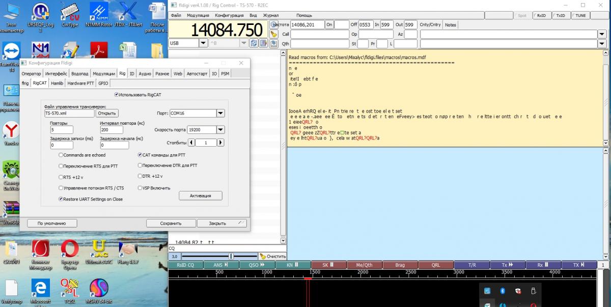 Юрий, спасибо за ответ. Настроил программу по ссылке с переводом. Как бы все хорошо, кроме одного, cat работает (связка TS-570D+unicom part 2) программа частоту видит, переключается на передачу, но в эфир ничего не выдает. Вот скрины моих настроек: http://joxi.ru/EA4d7JPTOPXq5A http://joxi.ru/82QjoR6HyD8bkA http://joxi.ru/823W1NPtDnzqP2 http://joxi.ru/4AkLBV4HXNjB5r Причем, на водопаде виден свой сигнал.