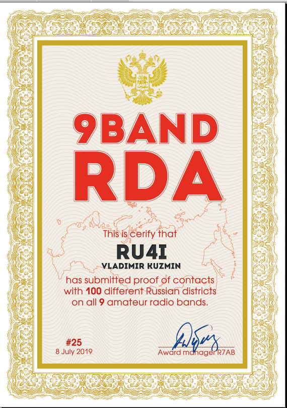 Вчера меня просил R2ZR провести связи на этот диплом. Вчера у нас весь вечер молния сверкала, не рискнул включать трансивер.