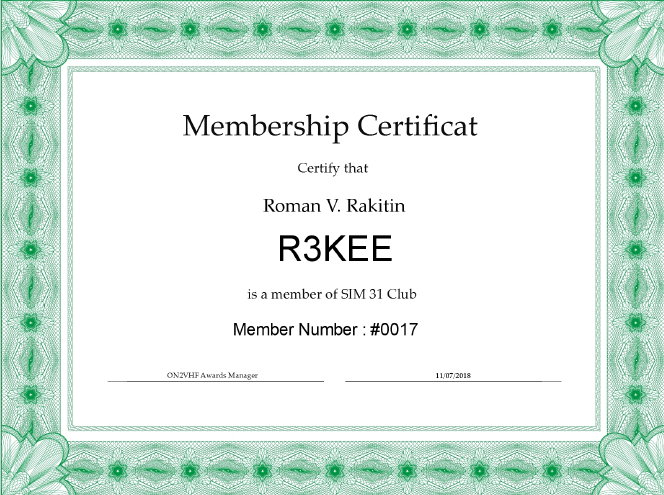 В SIM-PSK вступил как этот клуб появился ... где то был сертификат, он особой роли не играет. А дипломы там в клубе платные. Аналог как в клубе КДР , по этому я туда не суюсь особо ...выполнил, а получать не хочу.