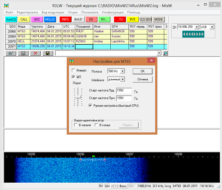 Вот МТ63 идёт оч. туго. МТ63-500, long нужно или short? Или ещё как? MixW плохо декодирует, не полностью и только после передачи.