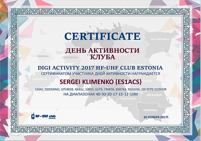 10 ноября DIGI Activity HF-UHF Club Estonia
