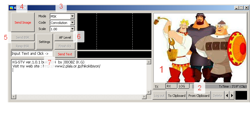 KG-STV передает изображения размером 320 на 240 пикселей. Для отправки перетащите(darg & drop) файл изображения (только BMP или JPG),на окно изображения KG(1)