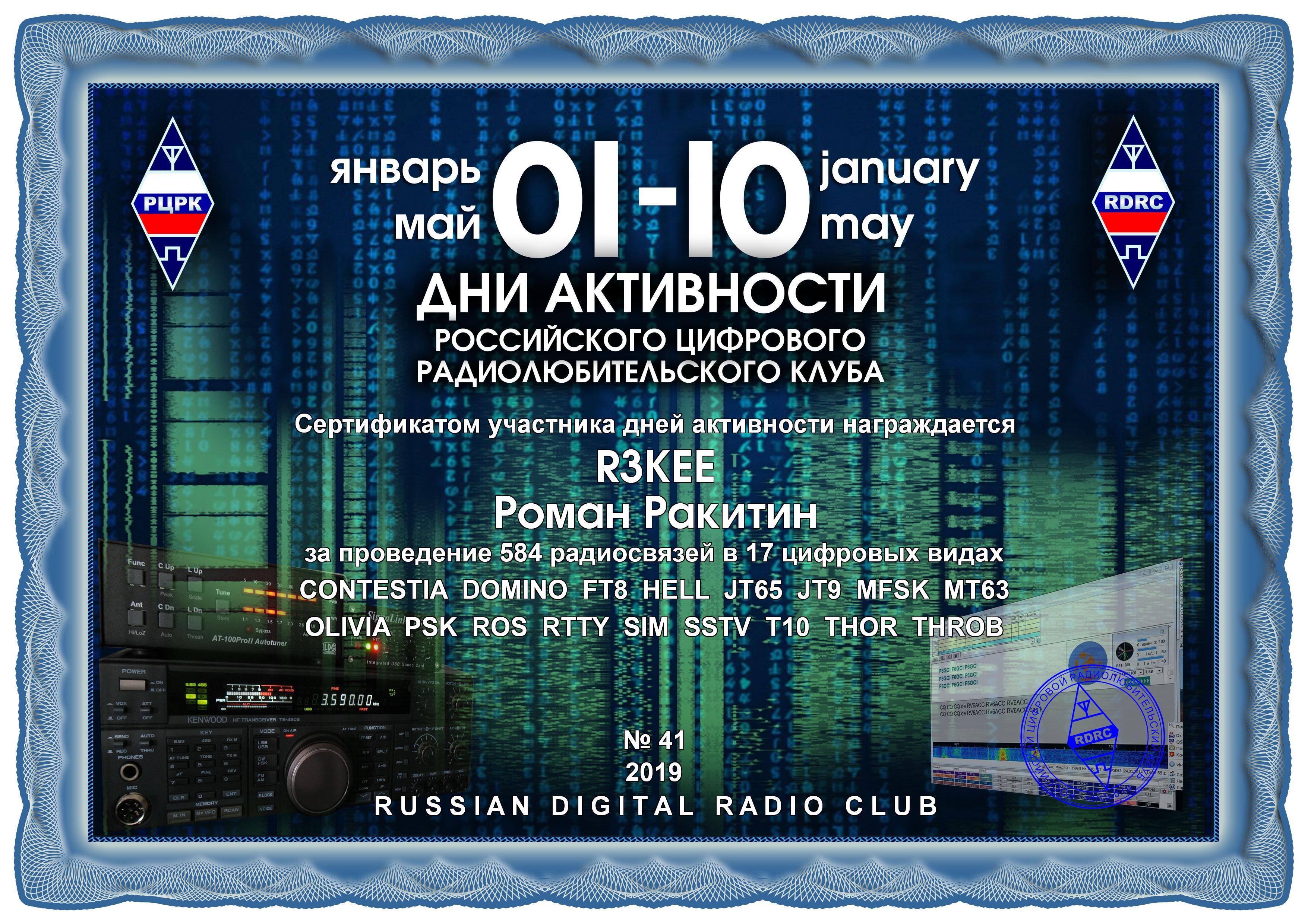 Сертификаты в электронном виде получат все участники дней активности за QSO не менее 10 цифровыми видами по 10 радиосвязей (наблюдений) в каждом из них.