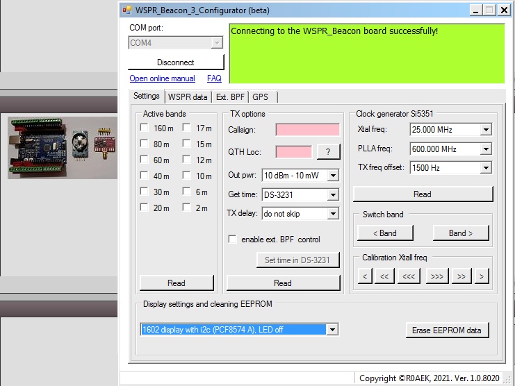Подключился к плате WSPR_Beacon успешно