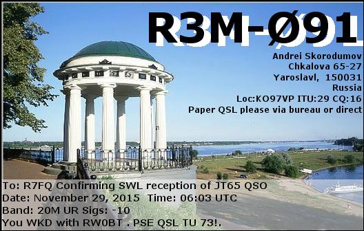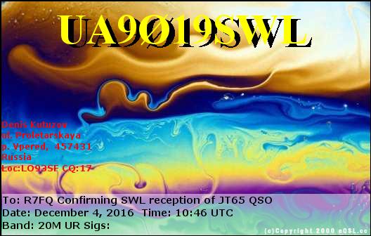 SWL сообщает: в 15:22 18 июля 2018 года слышал R9OY c уровнем -10 в модуляции FT8.