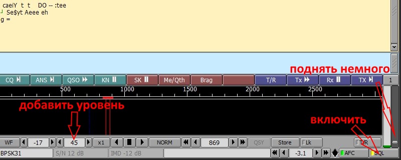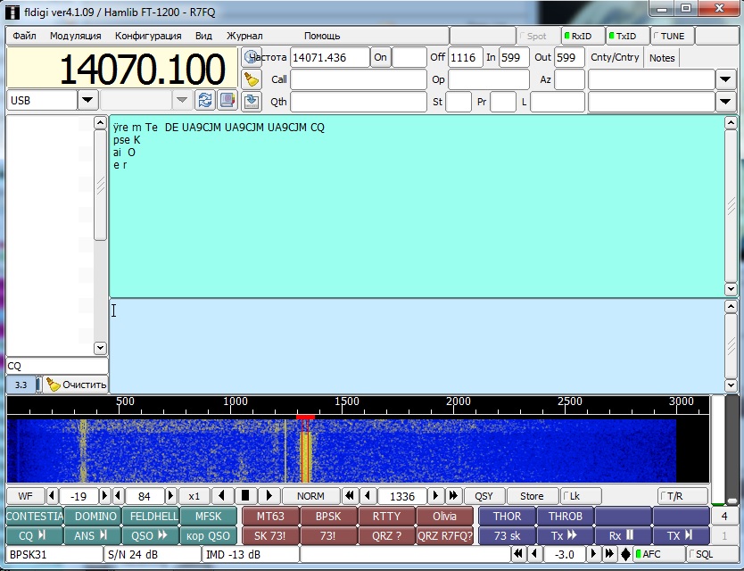 Получилось. САТ RX/TX переключает. Сигнал в эфир передается. Абракадабра печатается в верхнем окошке. Водопада нет. Управление частотой???