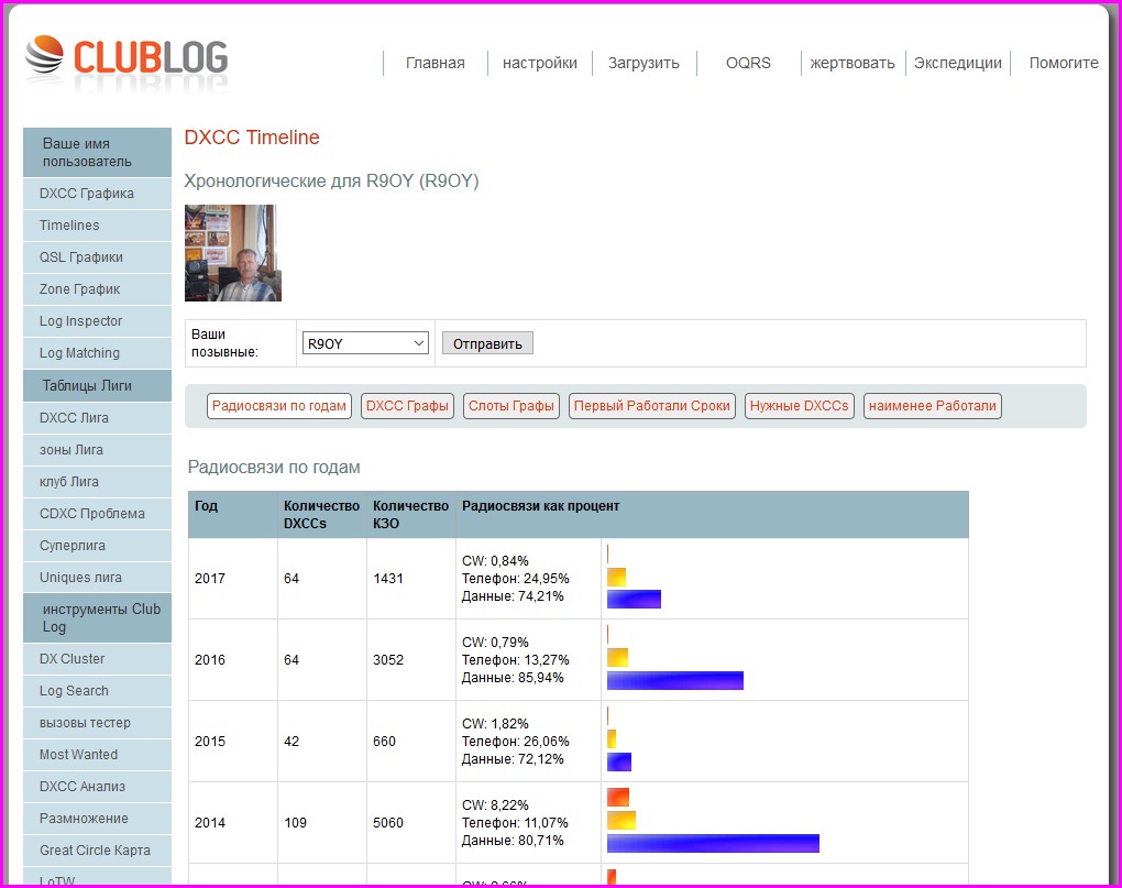 В левом меню этого сайта League Tables есть возможность иметь статистику членов клуба по странам DXCC, зонам WAZ, а также принять участие в рейтинге клубов - смотрите меню Club Leagues.