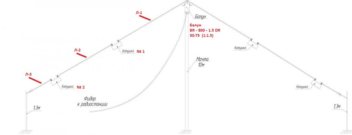 Антенна 160-80-40 с катушками.