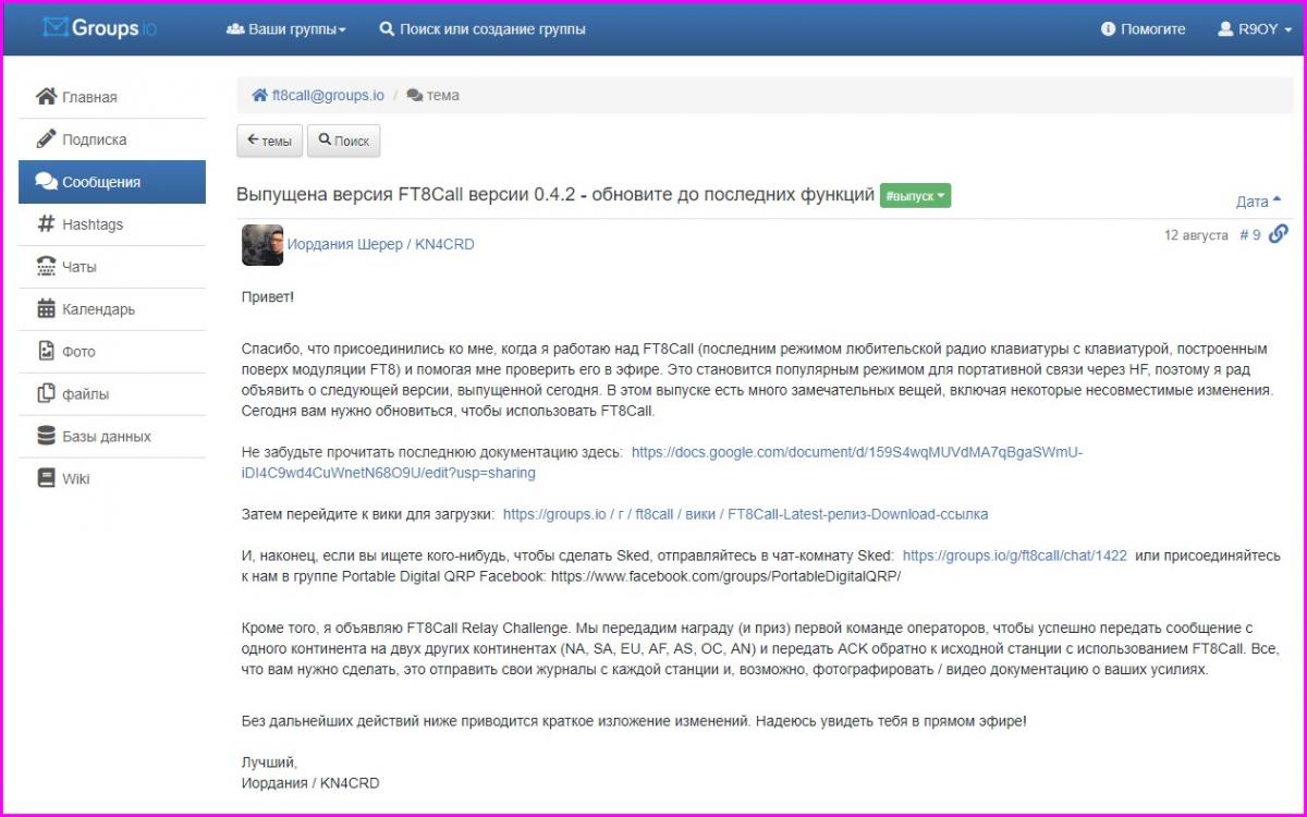 Обратите внимание, что группы.список рассылки IO-это объявление только. Если вы нуждаетесь в помощи или хотите общаться, используйте чаты: https://groups.io/g/ft8call/chats или напишите мне: kn4crd@gmail.com