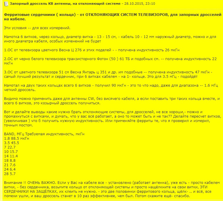 Кто подскажет ссылочку на материалы по изготовлению запорных дросселей из феррита отклоняющих катушек ТВ?