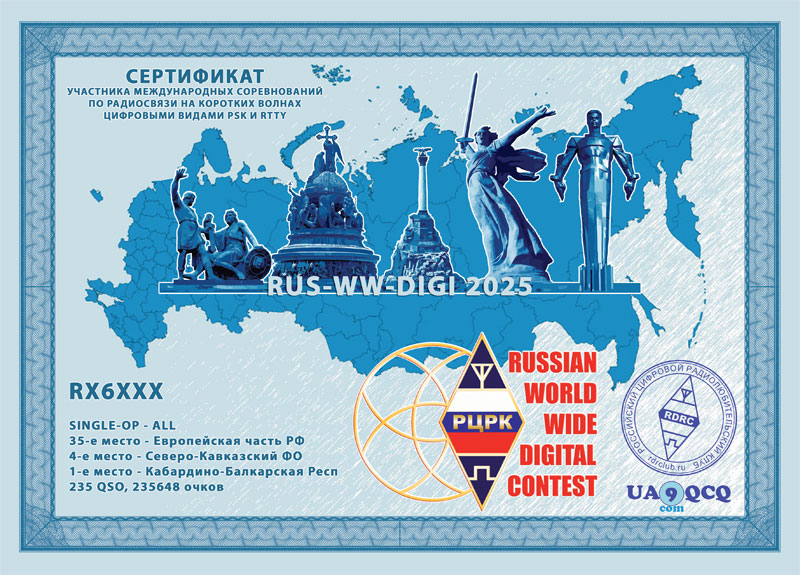 Начиная с 2025 года сертификаты за Russian WW Digital Contest будут опубликованы на UA9QCQ.COM, причём они будут выдаваться всем участникам приславшим отчёты.